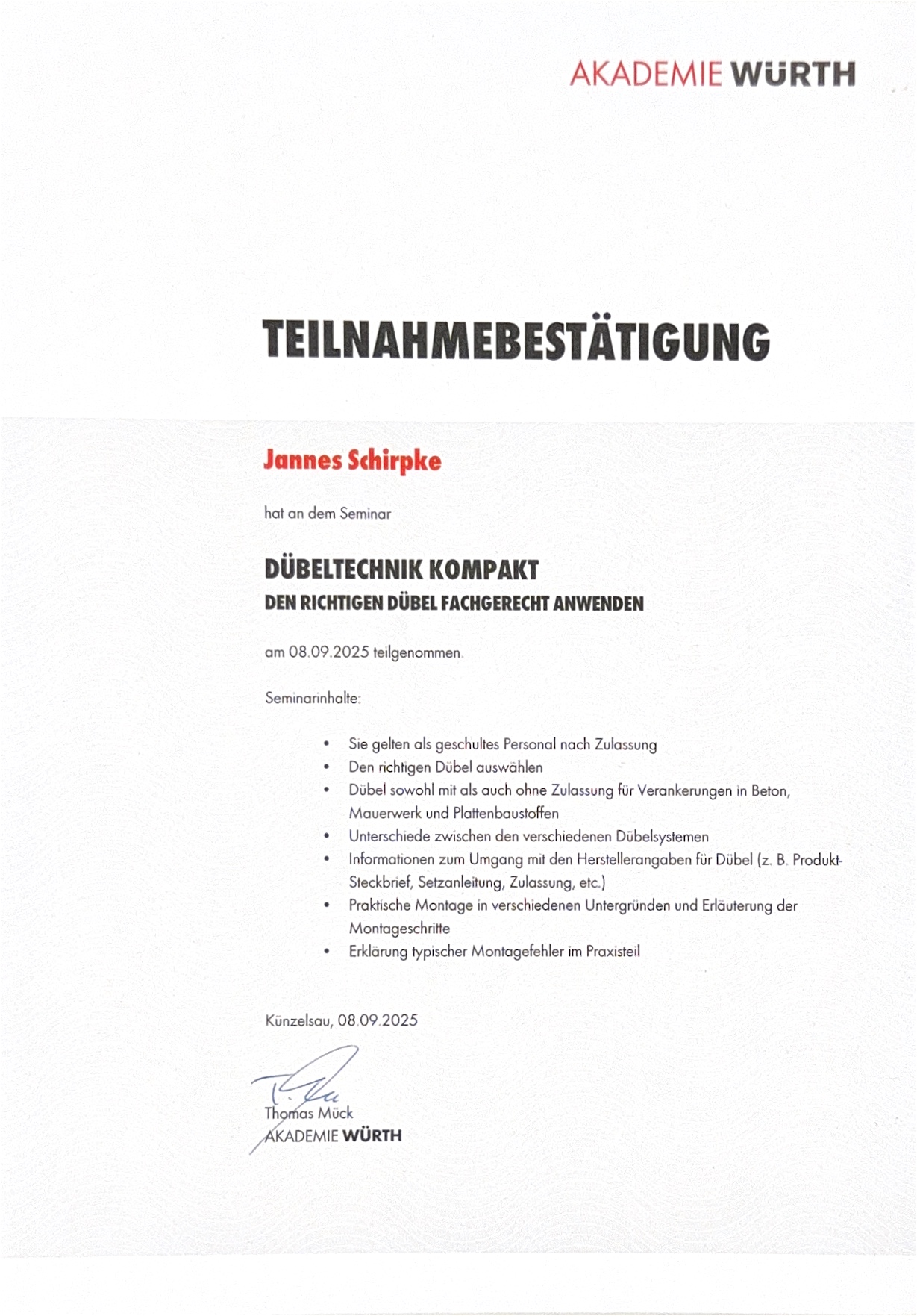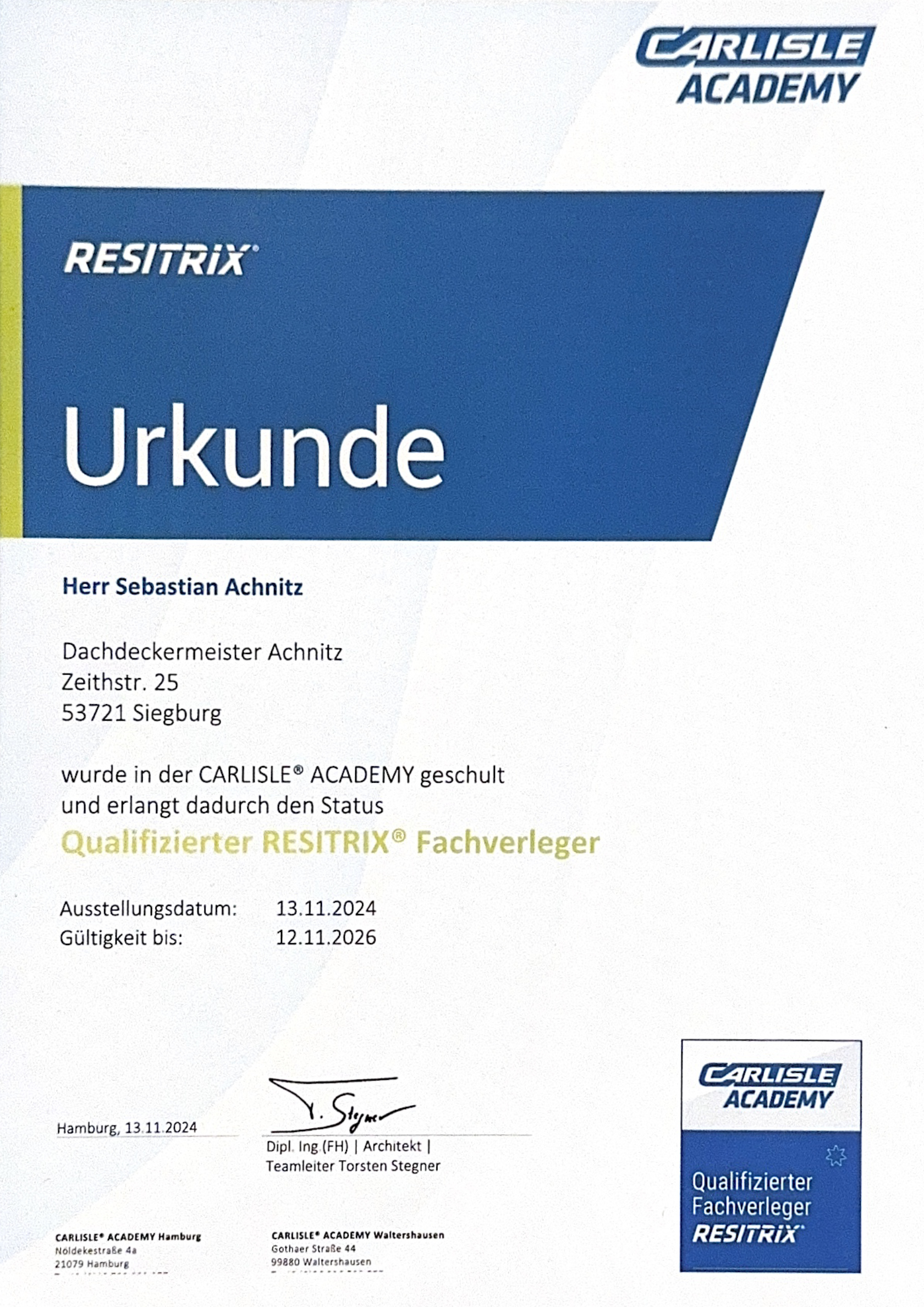 - seit 2018 Dachdeckermeister